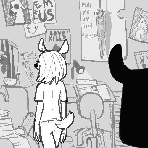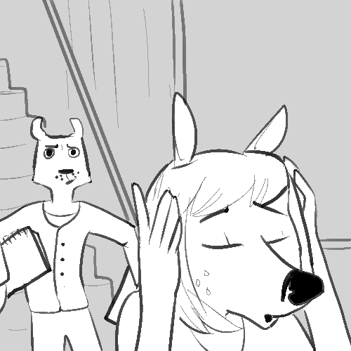 You nod, then back toward the door.