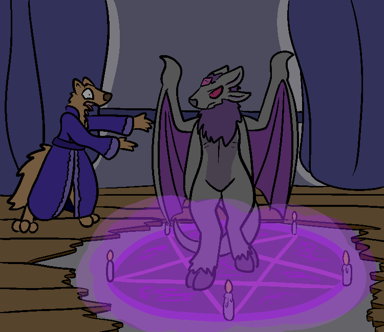 Lyquaccik - Lyquaccik could be called somewhat a story of tragedy, if daemons could be said to feel sorry for each other. He is a powerful wrath daemon with both attunement to shadow and fire, but has never achieved a status of high daemon like myself due to his lack of patience and hair-trigger temper causing him to murder almost every mortal that summons him before he can make an actual compact with them for their soul. He has less than a hundred souls, and almost all of them were gained in situations like this, where another, more proficient daemon sold the soul to him in exchange for a calling contract. This has caused many daemons to laugh at him behind his back, a viewpoint that he is keenly aware of, and only serves to feed his own unsupportable rage. However, awful business sense with gaining souls aside, Lyquaccik is extremely potent in combat, both physically and magically, and capable of growing temporarily stronger the more opponents he defeats in a short time. He is expensive, but in a battle he can outmatch all of the other minions and myself combined.