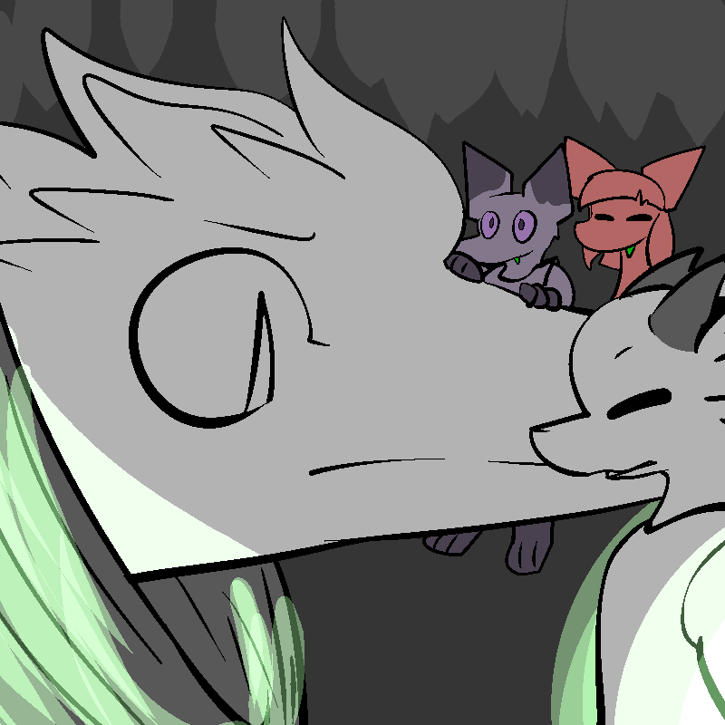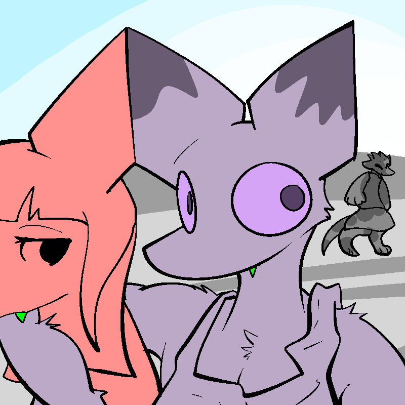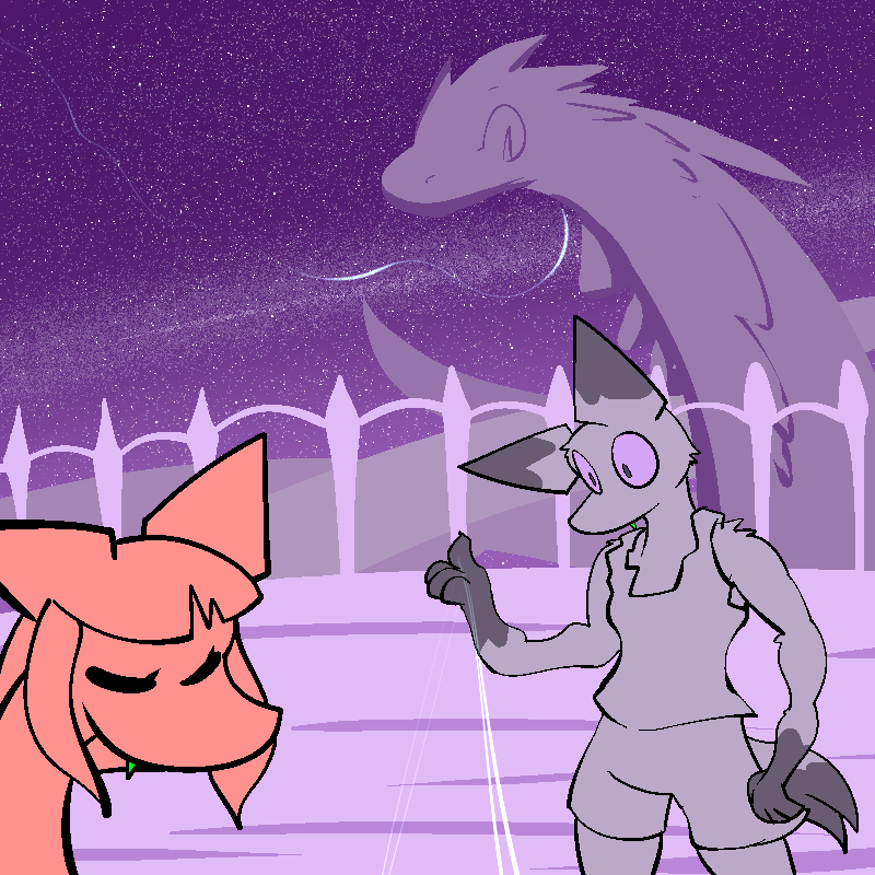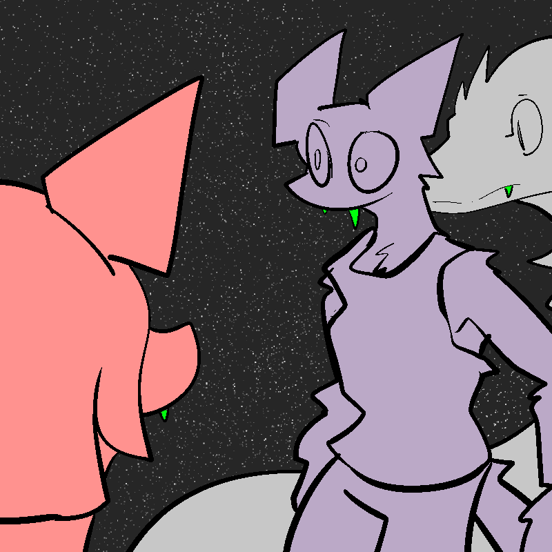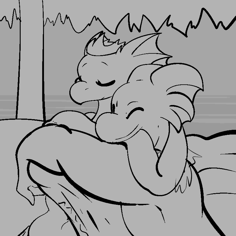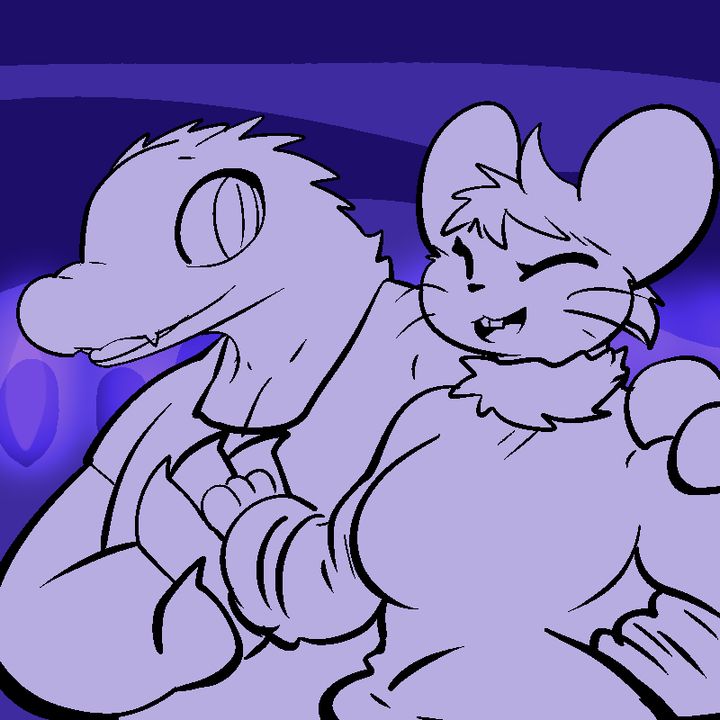 Second: Physique! You want to both be well-proportioned, and to have nice equally balanced muscles all over. In your case, Glitcher, as the guy, you'll probably want to have some more emphasis of muscles around the torso, across your chest and back, your butt and your shoulders and arms. Maybe make your hands a little bigger than average. But don't neglect anything else! And while you should both clearly have some muscles, don't overemphasize them. In fact, you could probably both do with being a little chubby! Primitive societies associate being well-fed with wealth and power. Rulekeep probably a little more than you because in those groups often guys are more expandable than girls and are more likely to get sent out to do dangerous physical things. She may want to emphasize her chest, have a nice curve to her shoulders and long legs, and bump up her butt and hips a little, though they look pretty good already (Not sure why pomi femininity would be associated with wide hips, given that they lay small eggs. Both sexes would probably start off with somewhat big hips to anchor the tail better, and the butt would probably still be a sexual attraction target thing, so maybe it would have been emphasized by evolution just for that, like baboons only size instead of color). You want to both look strong and like you're nowhere near starving. Nice smooth shapes, no sagging or wrinkling. It would probably be a good idea to get feedback from each other! Your body will probably have come preloaded with a sense of what it's attracted to and Rulekeeper's what it's attracted to, so try out a few variations within the tall-strong-cushioned range and talk to each other about what seems to get a good reaction.