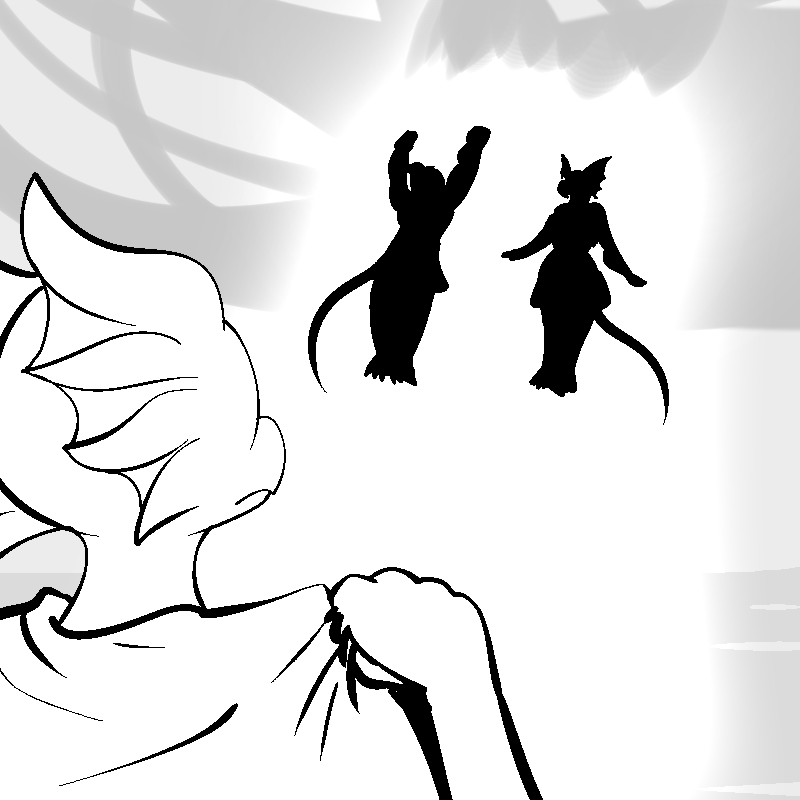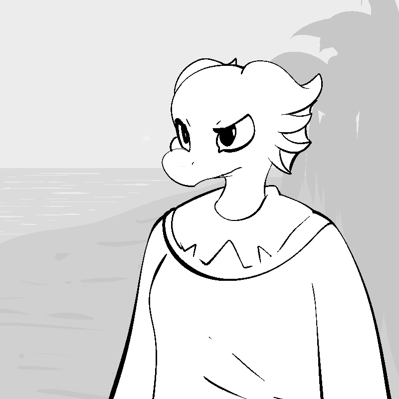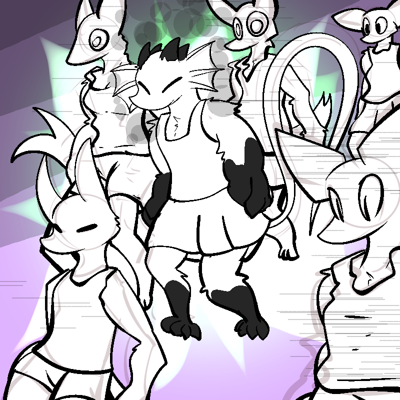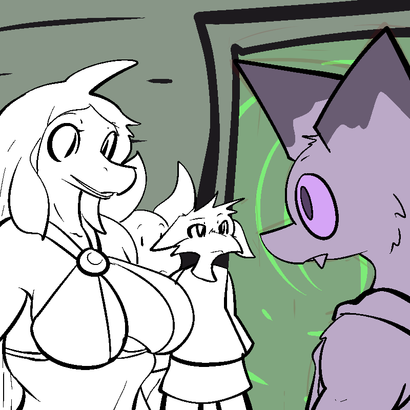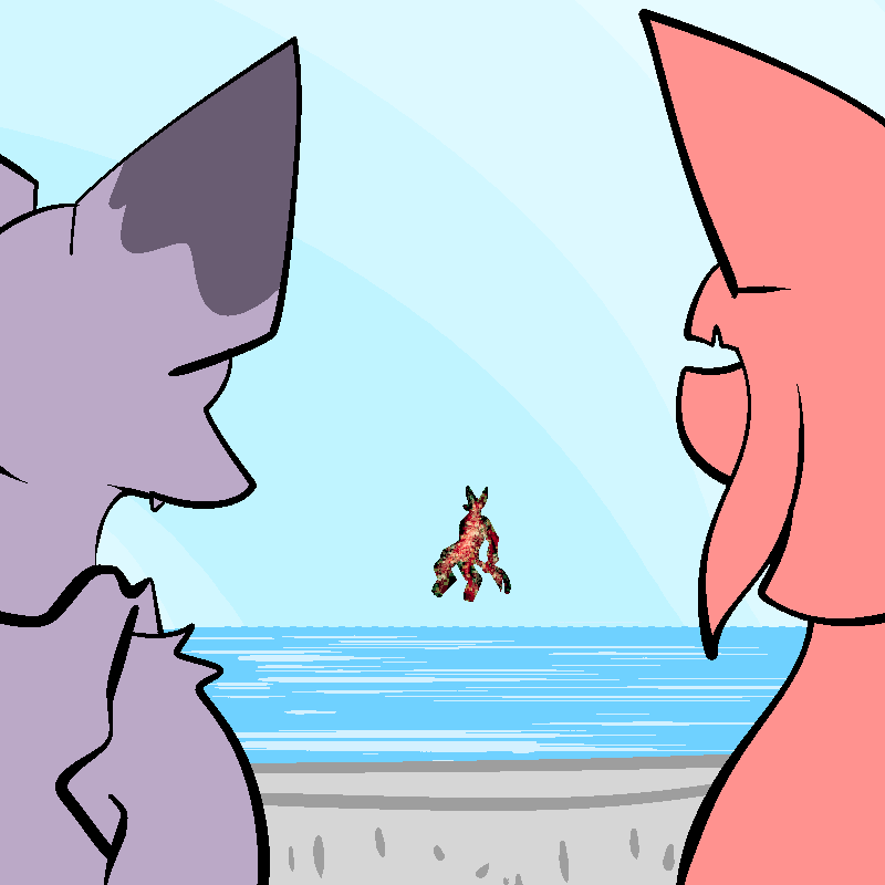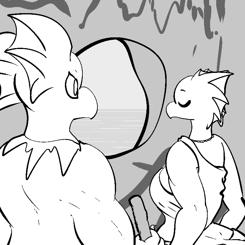 Third: Style! Theme! Gods are generally gods of something. So, you're the Chaos god and Rulekeeper is the Law god. You should look a little roguish, a little more wild and worn, maybe with rougher scales (so long as they still feel good to touch - get Rulekeeper to try it out), and maybe give yourself some cool scars. Give them a darker color, and maybe include some variation? Do pomi ever get patterns or patching on their scales? Well, if not, you're a god so maybe do that anyway. Keep your weird frill style but make it a bit longer. You'll dress in natural stuff, leathers and feathers and bones and shells and leaves, and give yourself whatever the pomi equivalent of tattoos are. As for Rulekeeper, being the Law goddess, she should be nicely smooth-scaled, and one color but something bright and warm, with a nice sheen so that she looks radiant. As opposed to you, she'll wear refined, manufactured things: woven cloth for her skirt and top, dyed and embroidered, and a bunch of jewellery made of refined precious metals and cut and polished gemstones, necklaces and bracelets and anklets and belly chain and frill piercings and things. Speaking of, her frills could probably do with being unusual as well, but in a nice lovely regal way, like a sort of headdress effect. In both cases you should both dress pretty skimpy. Gods have no need of protection, and nothing to be ashamed of!