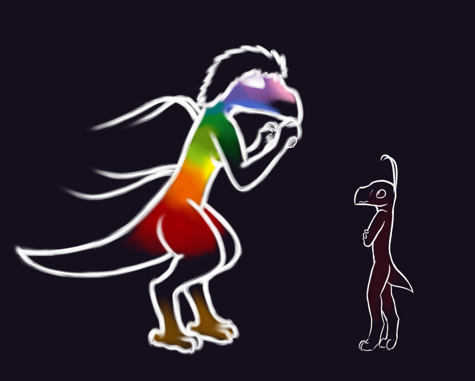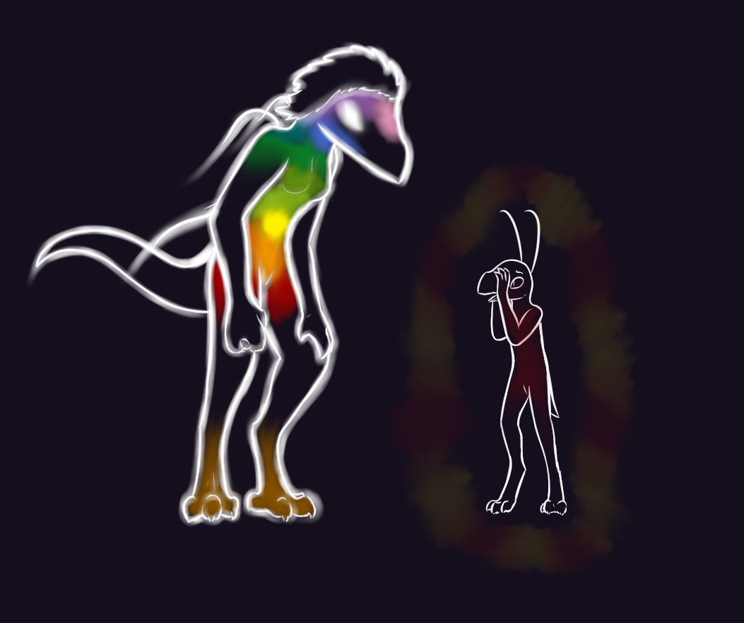 Actually, I didn't even notice until you pointed this out… I don't know what a rainbow-person means, nor an empty-person. I suppose colours are probably good though? And if they are meant to be good, then I feel a lot less comfortable about our conversation with Haxťe...