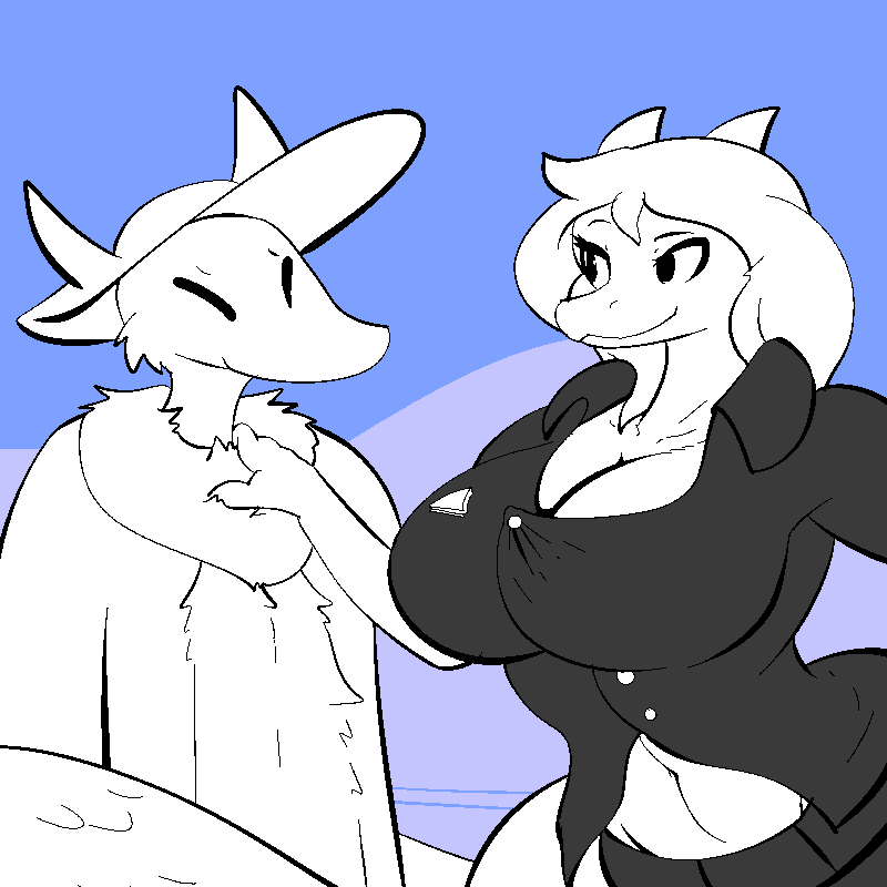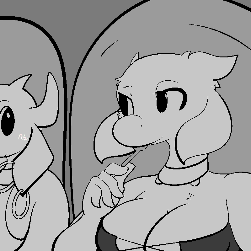 Coral's hands wander down to Naylia's butt, to which Naylia idly tugs and plays with Coral's earrings.