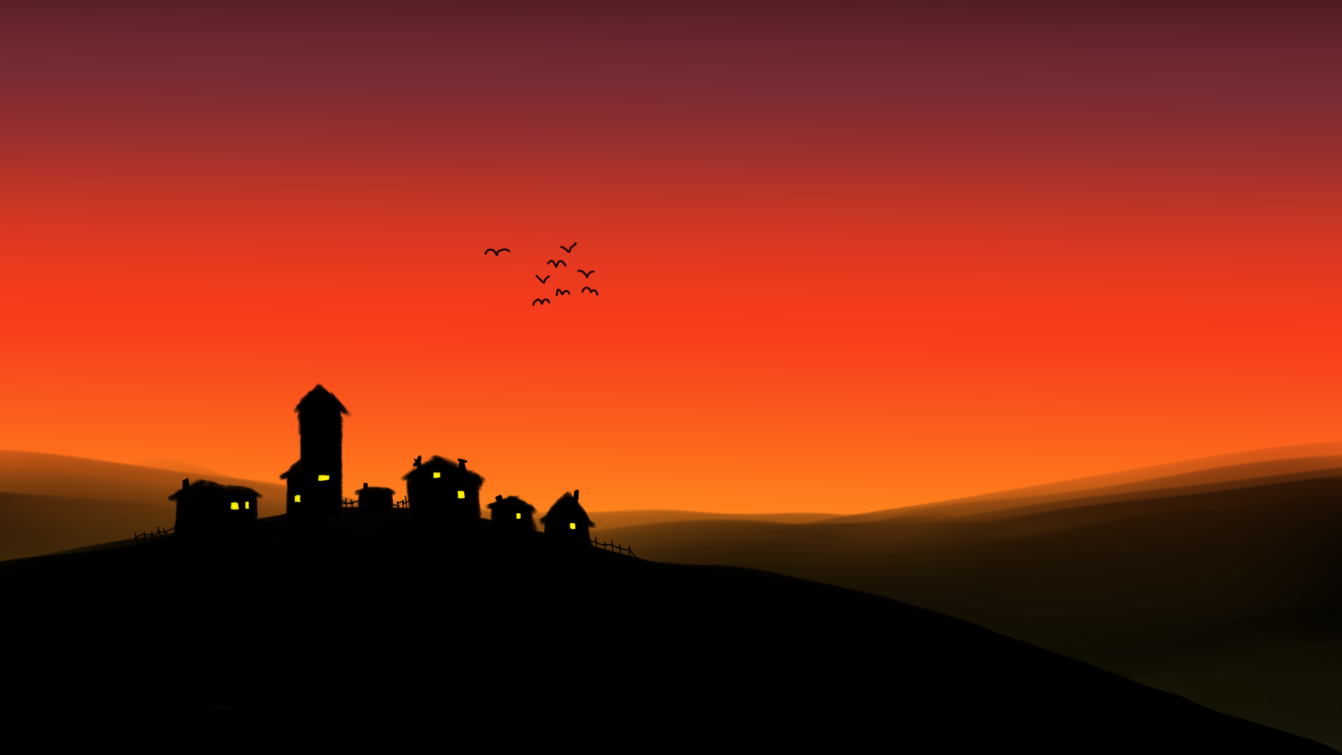 It is dusk at the Village on the Hill. The harvest sunset illuminates the countryside in a brilliance of oranges and yellows as it sinks beyond the horizon. A constable of ravens fly into the distance, their caws echoing off the rolling hills.