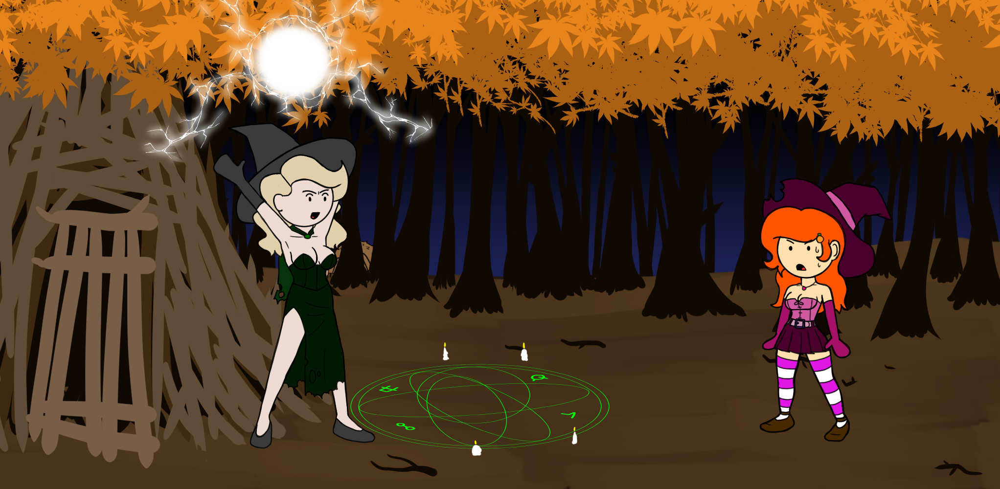 With the parents gone and the house to herself, Anita relaxes with a bath in her cauldron. Finally, a chance to enjoy some quiet. The chaos of the Wind Magic Academy school year is on pause, and Halloween is nigh.