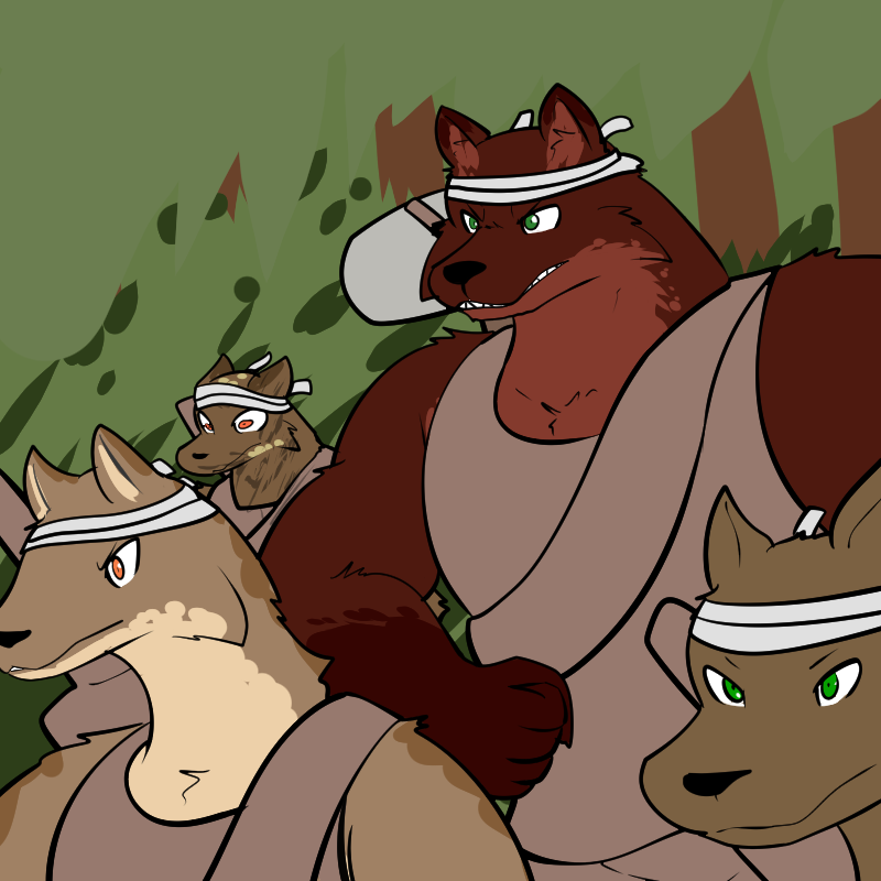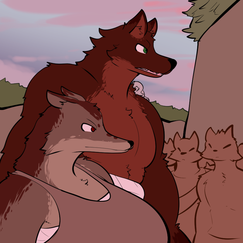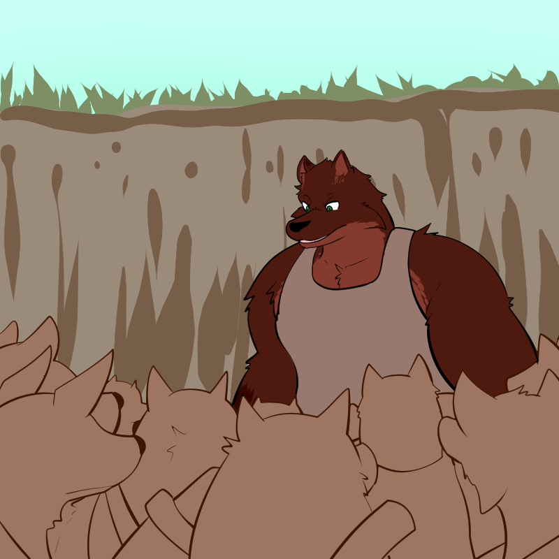 Let's see, we have those two sets of cliffs, above and below, and hopefully one day we'll have towers to look out from them. Something with "watch" in it, maybe? It's a good word, makes you think of vigilance and awareness and discipline. Implies power, too, that you've got an eye on things. And the red-brown fur spectrum seems common here. Redwatch? Rustwatch, like you're looking out on the rusting remains of your enemies' gear?