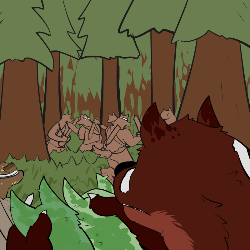 He also gives a set of reports from the scouts returning with word on the outside. Apparently there's 4 nearby clans that are joining forces.