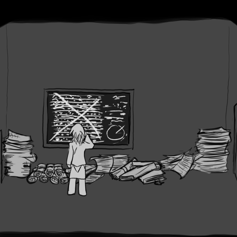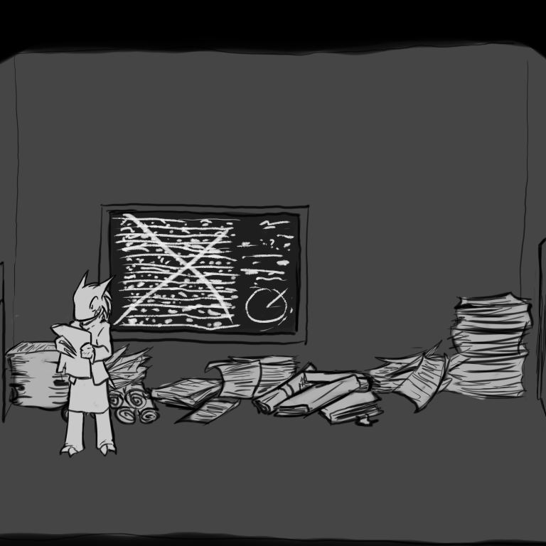 It looks like all of the papers are sheet music. All of them appear to have at least some similarities to the score on the writing board.