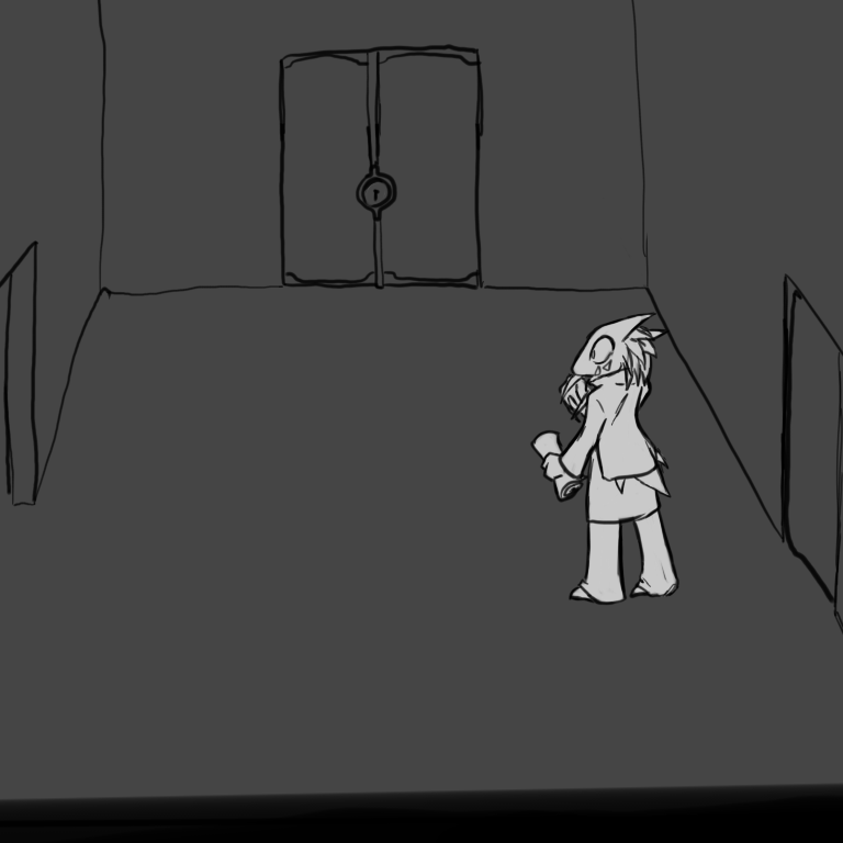 There is no string. The only things in this room are the door you came through, the pile of sheet music, the writing board, and the door on the left wall.