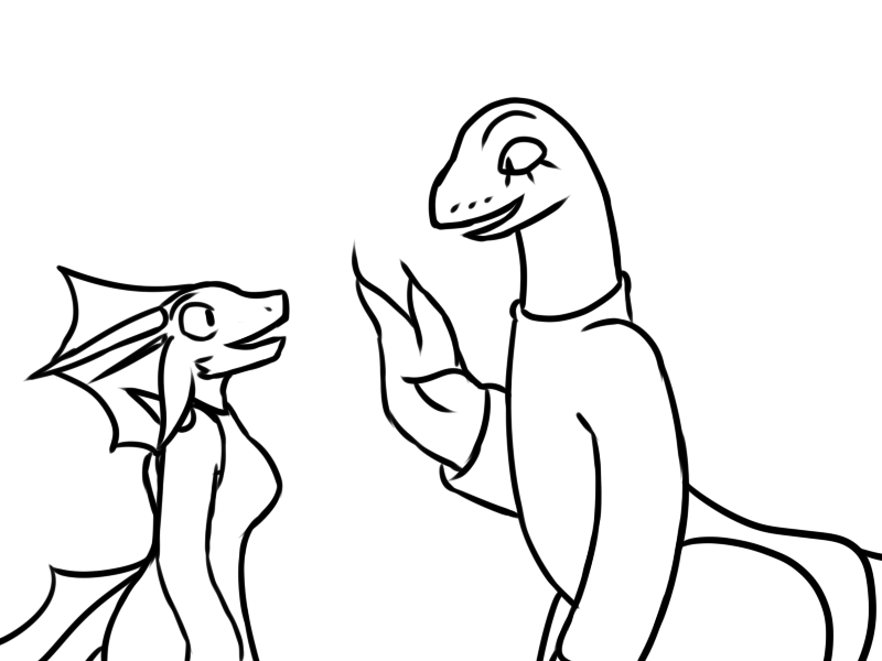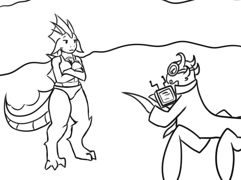"Besides, this might be an opportunity to do something related to mine and Skif's dreams of repairing mortal-dragon relations in the long run. If there are exiled bad dragons around doing bad things and kidnapping people, well, obviously we'll have to do something about that eventually, and here's a way to get a head start on it. If we shy from conflict forever, that dream's never gonna be made a reality! Though, again, if we can wait on your dragon friend, then I'm totally in favor of that. I'd -love- to talk to them about what dragon society's like, among other things."