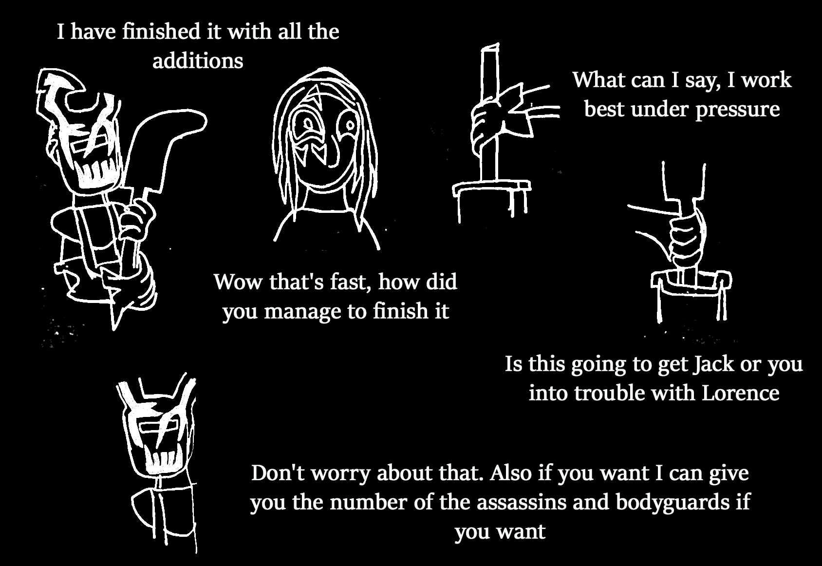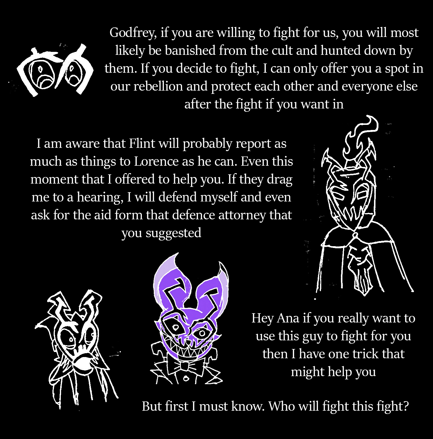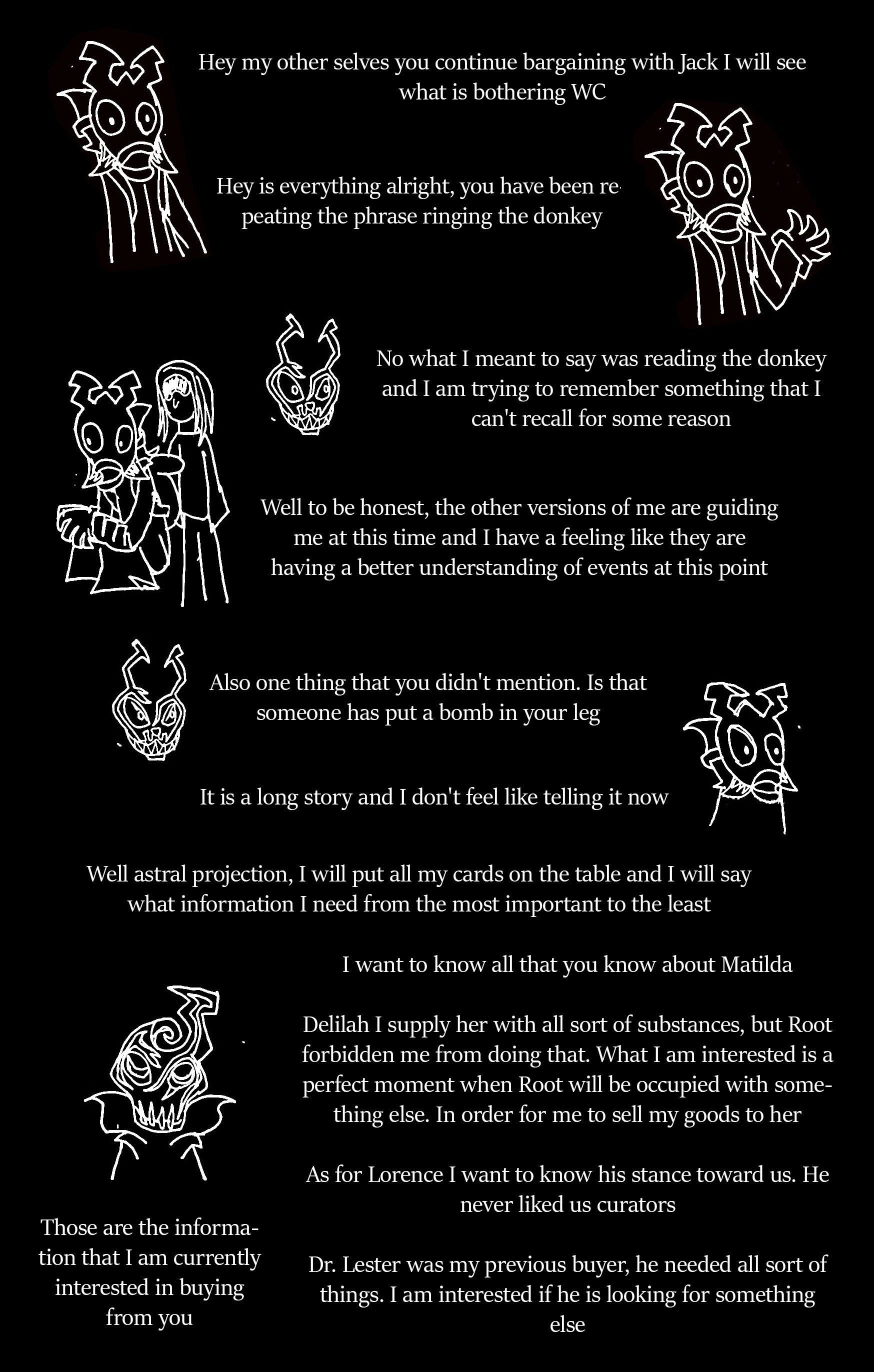 Lorence, as I said, owes us for helping him escape prison, and probably saw Clara as a valued member before her injuries, and may want the chance to bring her back. He might be more willing to help us if only for that reason, though, there was that time during the end of Meaningless Ticking where he said he was going to evaluate her to see how loyal she is to the cult. Perhaps after his evaluation he is going to use the needle of life that we might give him to heal up Clara, but we cannot be too sure if that is what his intentions are, as we cannot see into the future. We can only theorize on that. Even if the evaluation is for seeing she is trustworthy enough to heal, it all hinges on whether or not Clara can pass the evaluation. I don't think she did anything to purposely anger Lorence though in the past. Plus, we run the risk of Lorence not telling Clara or Rosalia that it was us who gave him the needle of life to heal her. He is our enemy in the cult, after all. Lorence is also known to hate curators, and might not want anything to do with the delivery, but maybe the shopkeeper can use clocks as an advantage.