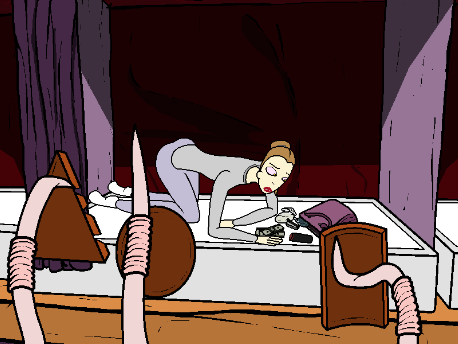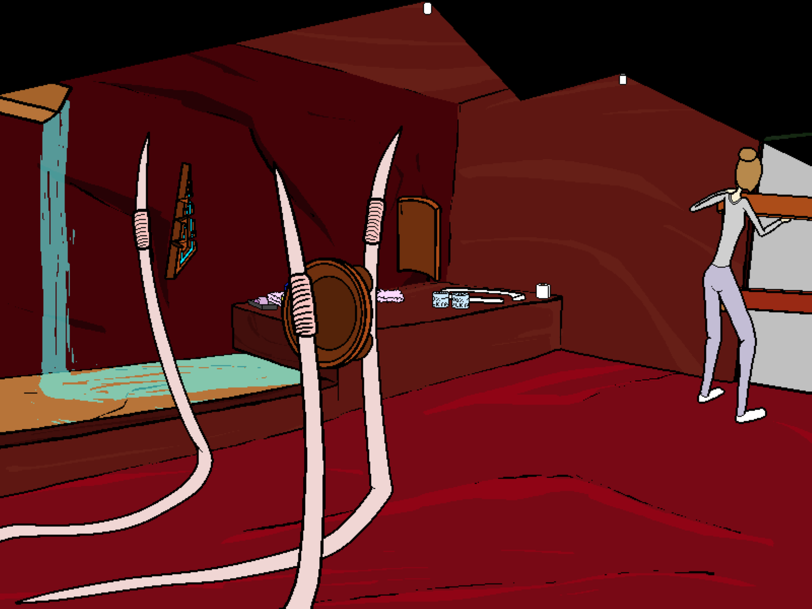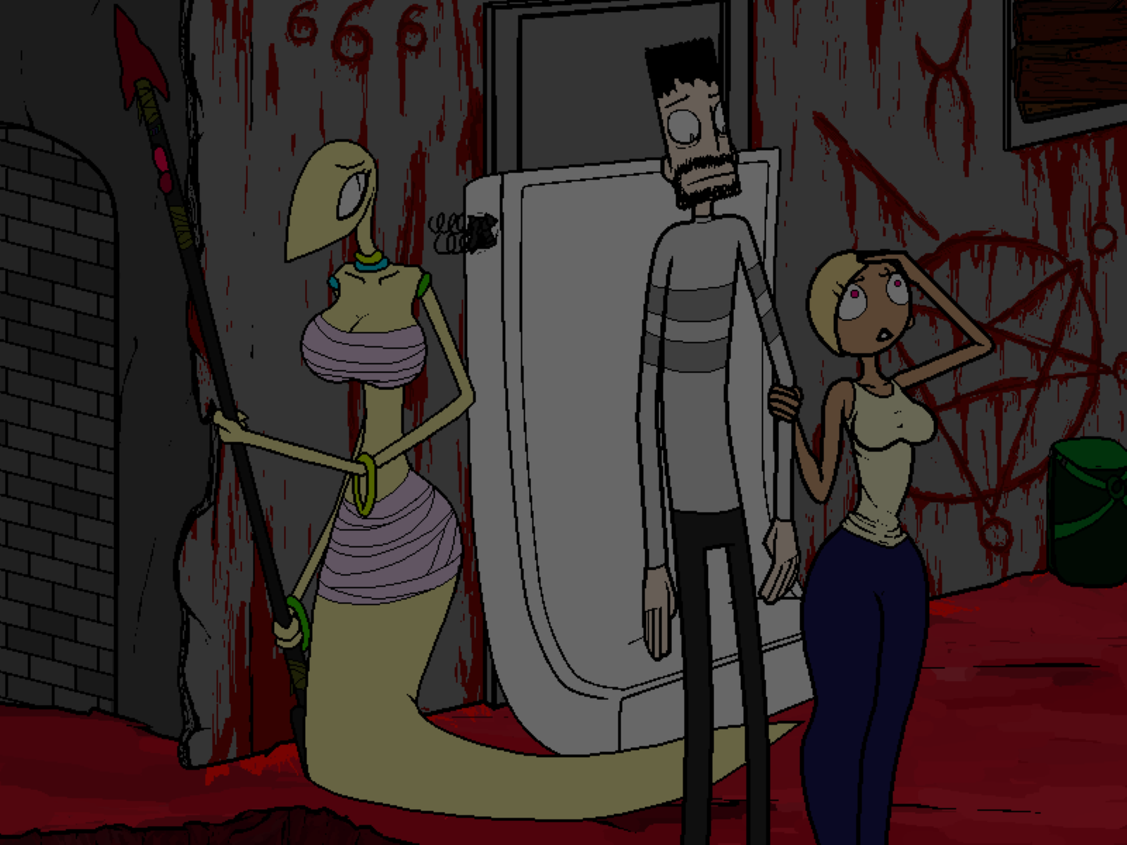 > new guy is who we came in with, was with a, uhh, prostitute, in a cheap motel. she went into the closet and it turned into a portal to a hell zone and she was kinda horribly tortured, then we staged a rescue. flip side we learned some magic, got the runes for immortality, painlessness, and "eject all your blood". i do not recommend that last one.