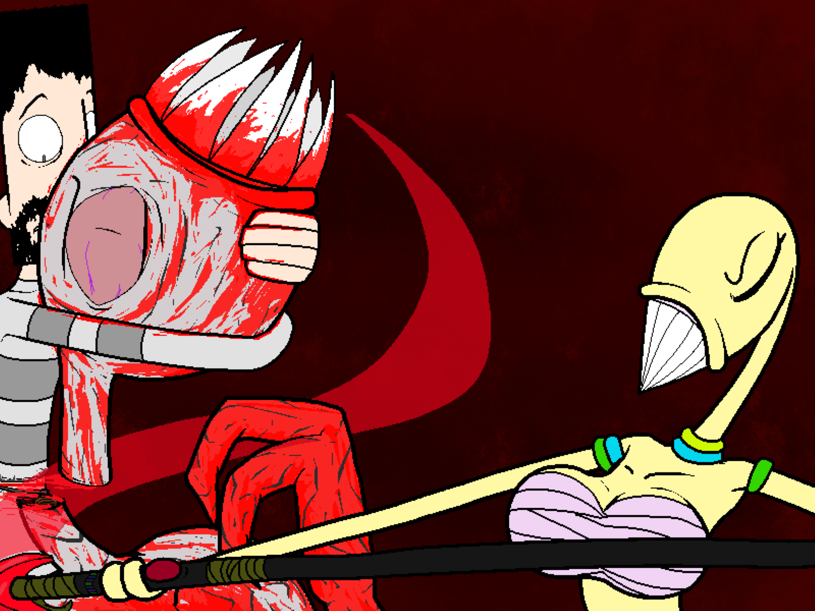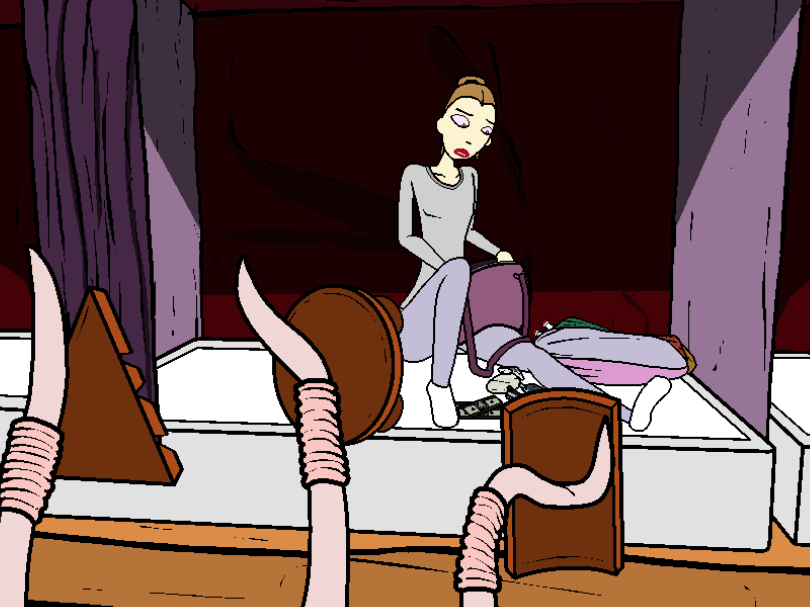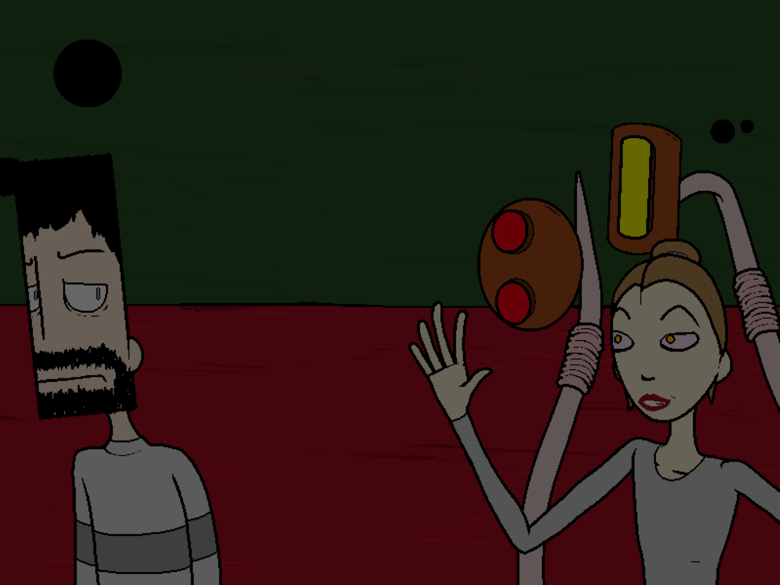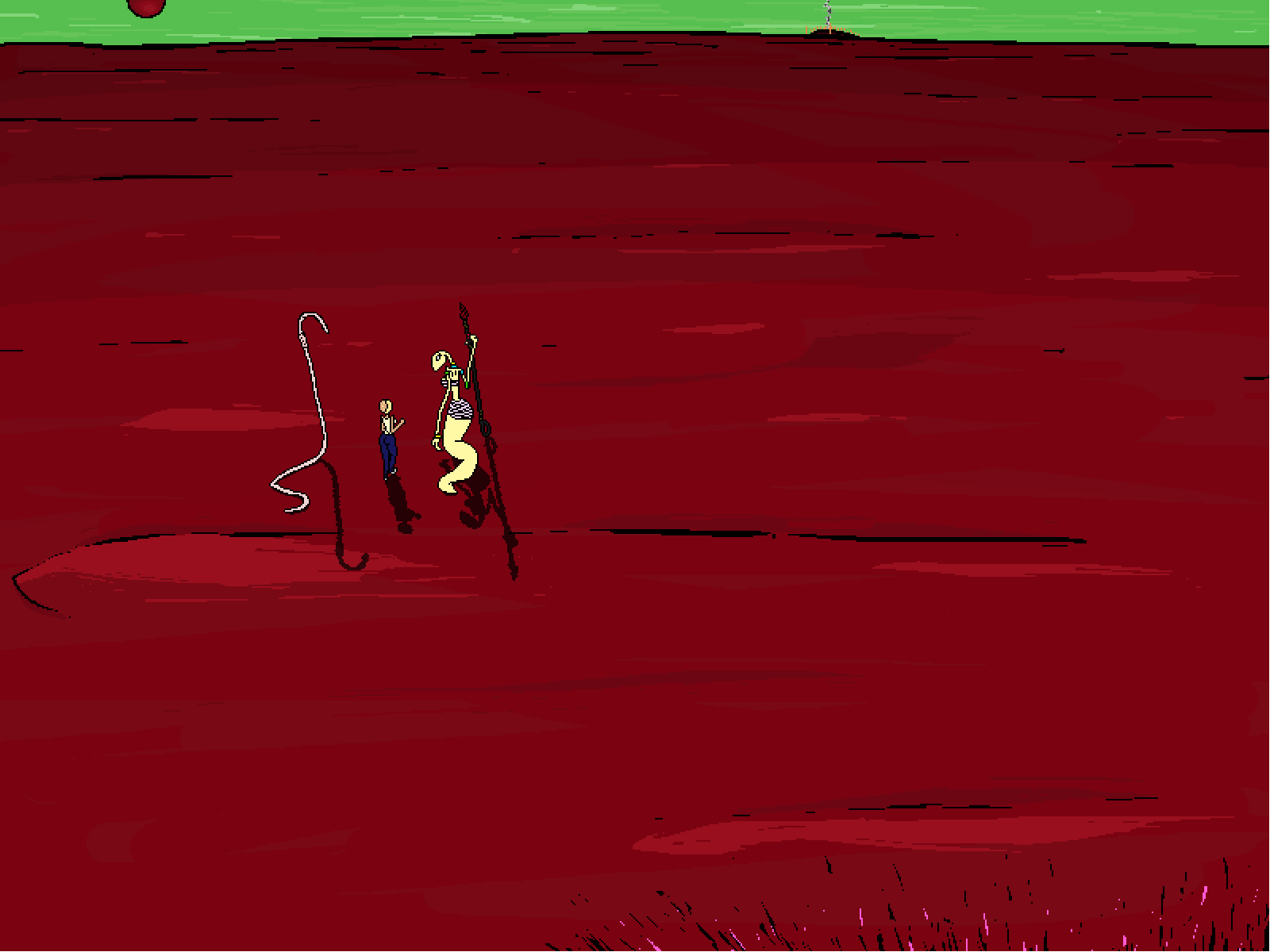 > new guy is who we came in with, was with a, uhh, prostitute, in a cheap motel. she went into the closet and it turned into a portal to a hell zone and she was kinda horribly tortured, then we staged a rescue. flip side we learned some magic, got the runes for immortality, painlessness, and "eject all your blood". i do not recommend that last one.