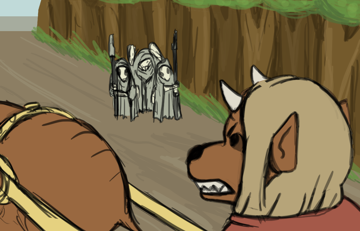 As for Skrep & Sezeda & Vovo, if they haven't run off, if we can get 'em dressed we can put 'em up on the top of the carriage even if they're too broken to help they can at least give the appearance of a larger force.