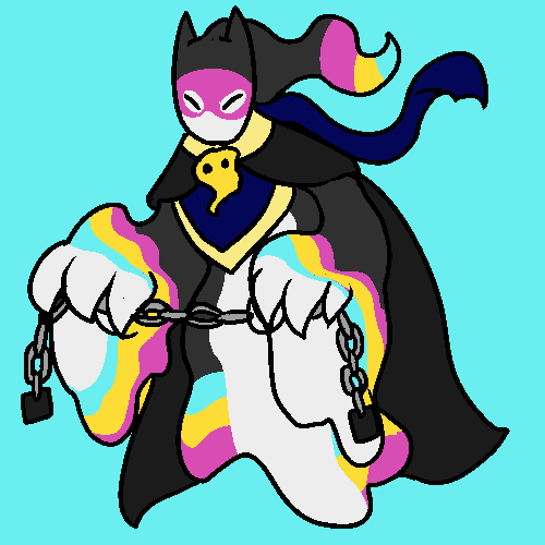Dad is outfitted with a new suit, a cape and a crown, an emblem clasp, and pouches to hold her ammunition. She opts to keep the communication mask instead of getting a new one.