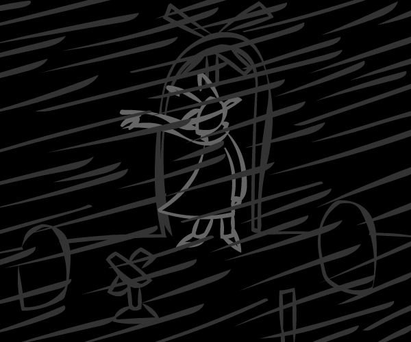 He is a rough man, but if anyone knows where my wife is, it will be him. So I rouse him from his slumber in the middle of the storm, and he greets me at the door, looking very displeased to see me.