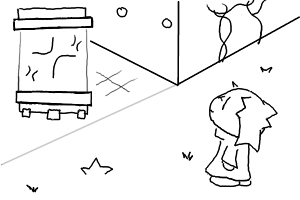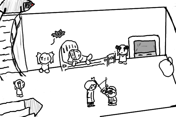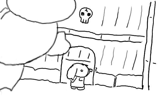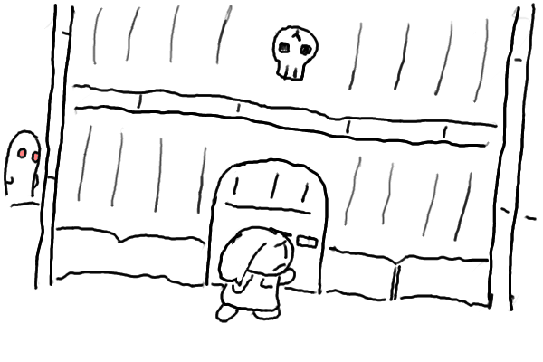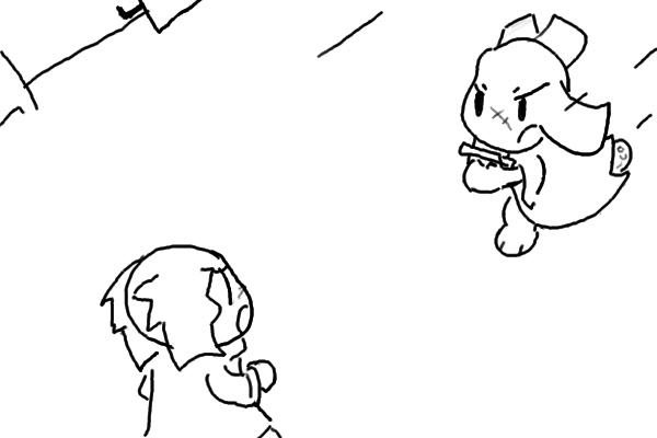 Itoh: "Oh! Sue! So you escaped, too. I managed to get away, but... That witch Misery turned me into this... And now I'm stuck here! You climbed up from the outside, didn't you? I'm deathly afraid of heights..."