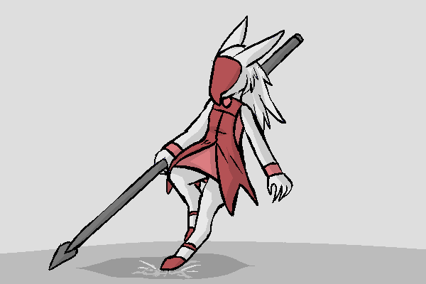 She shifts her spear and holds it out in her hands to take in the brunt of the force.