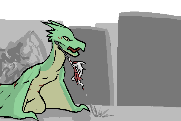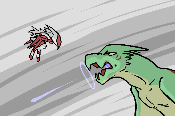 The beast could hardly let out a croak as it's windpipe gets crushed under the impact and it's scales strain to hold it's mangled insides together.
