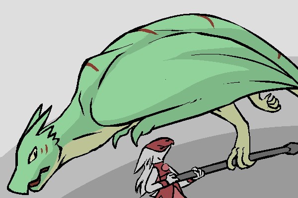 Her spear glances harmlessly off the beast's scales as it shifts it's head, the scratch causing it to roar at her.