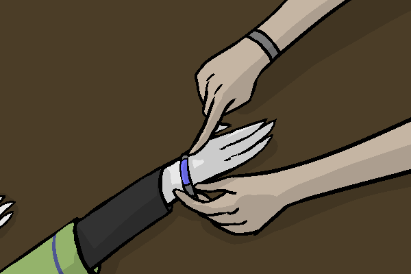 He snaps his fingers, and a maid places a tray onto the table, with a roll of cloth on it. Enrod reaches over to unwrap it, revealing a... stick? Something the size of an ear. "Take this, as a sign of good will."