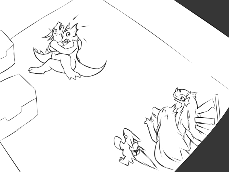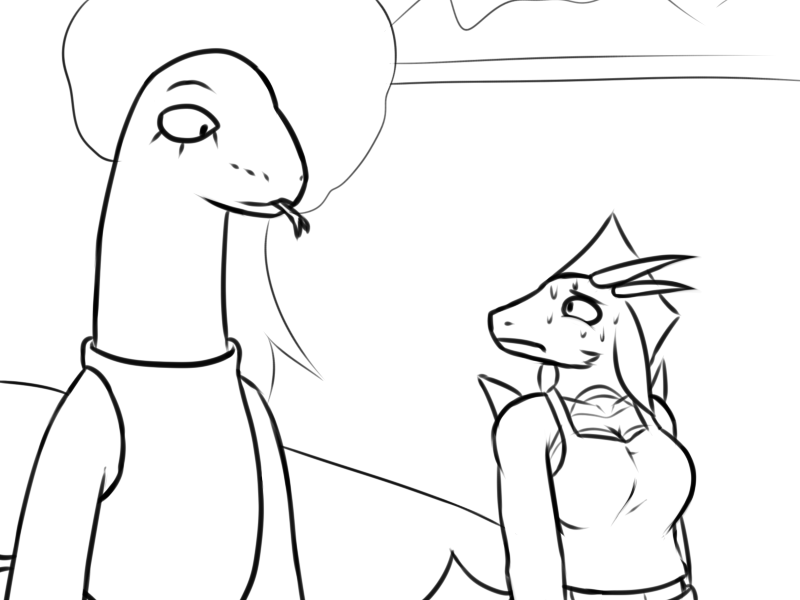 The male lizard speaks. "So you brought friends now!? What kind of sick pervert are you!?"