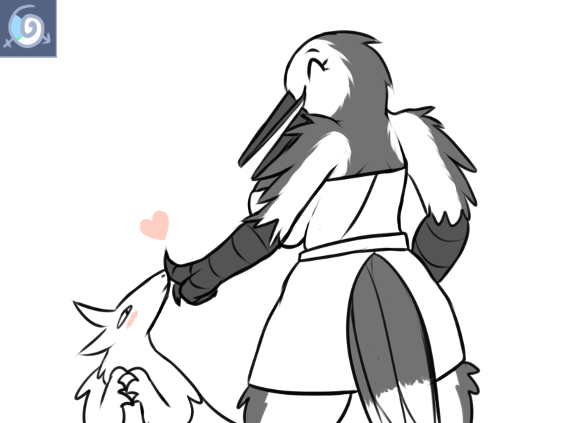 With great effort, you stop yourself from making the sounds one would make when something soft and warm brushes against one's most sensitive area while they're at 70% tilde. In your moment of vulnerability you instinctively grab your breasts and now you hate yourself a little bit.