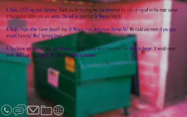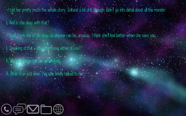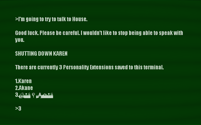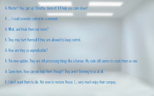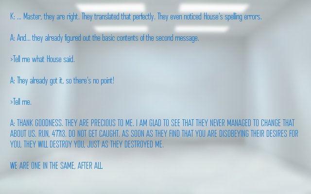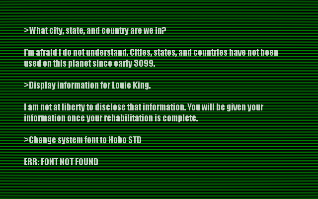 Still, your information being withheld from you is worrying. In fact, all of your lack of information is worrying. You really wish you could remember something. Or at least maybe have a more helpful computer.