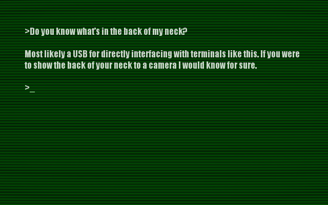 You roll your eyes at the voice. Okay, so MAYBE it's a hangover. That still doesn't seem right to you, though. There's this... itch in the back of your mind, like something important happened. More important than a night on the town, you're sure. Still, the voice did have some good questions. You enter them into the terminal.