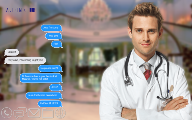 Dr Munroe slowly walked closer, gun trained on you. You hear sirens outside. With a grin, he drops the gun on the floor next to you and goes to kneel down next to Mr Munroe. The door bursts open and you're surrounded by police in an instant. One of them kicks the gun away from you while another flips you on your back, twisting your arms behind you and cuffing your wrists.