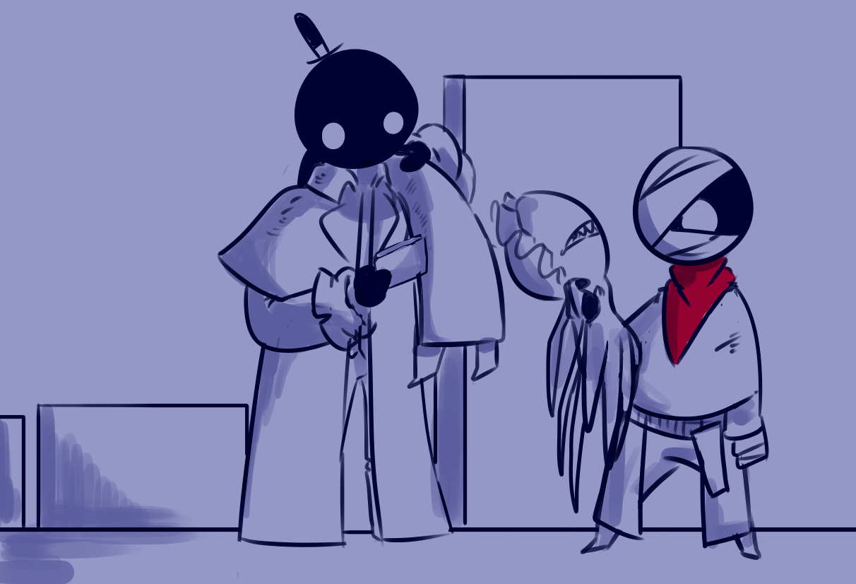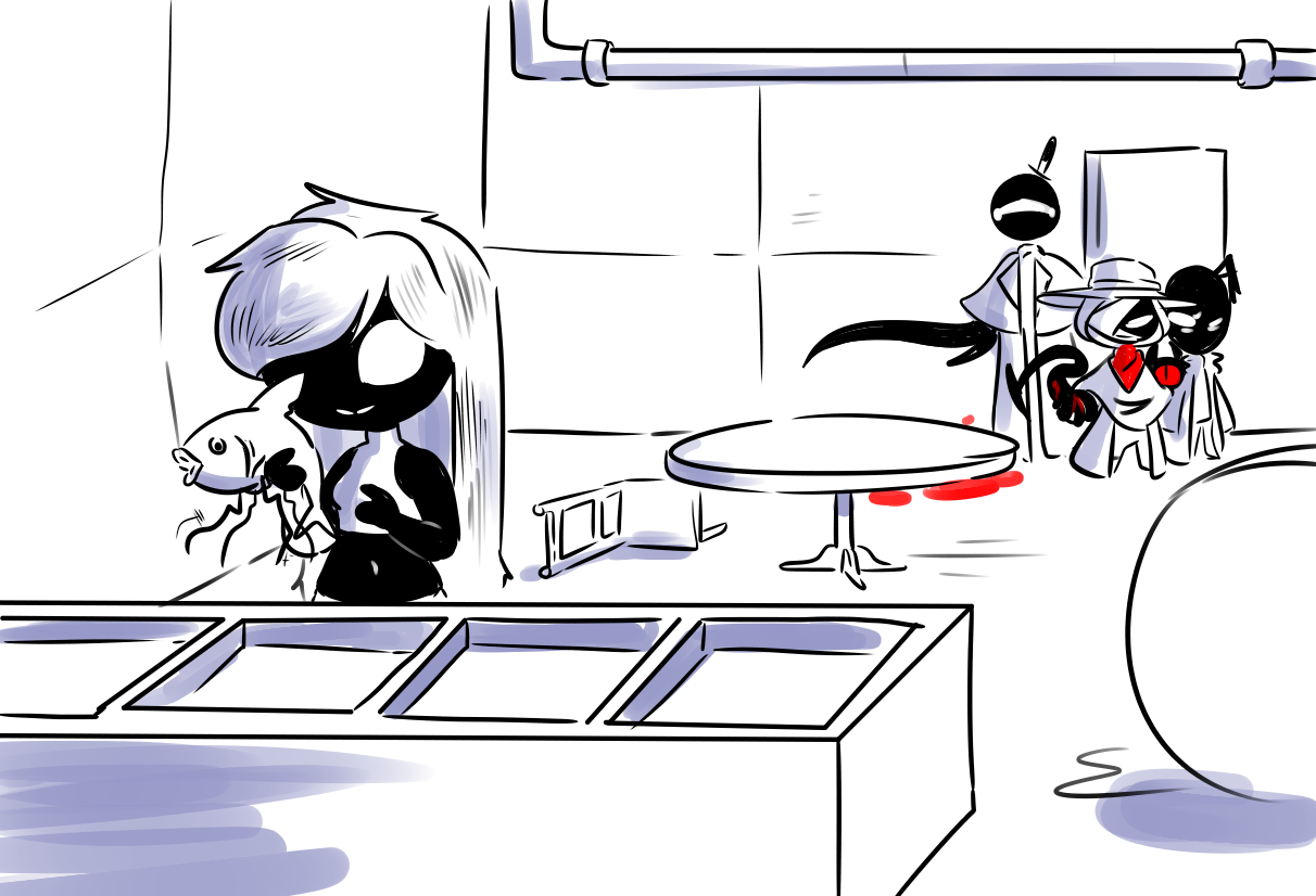 "Troy? He's all yours. I'll go mix some drinks and summon Fiddler for the entertainment. Issei? Feel free to keep an eye on our friend here and see that he doesn't card shark us - you've got no reason to love sharks now, right? - and if he does, well... uh, oooh man, we'll call him such nasty names on our way out, I'm sure. Really hurt his feelings."