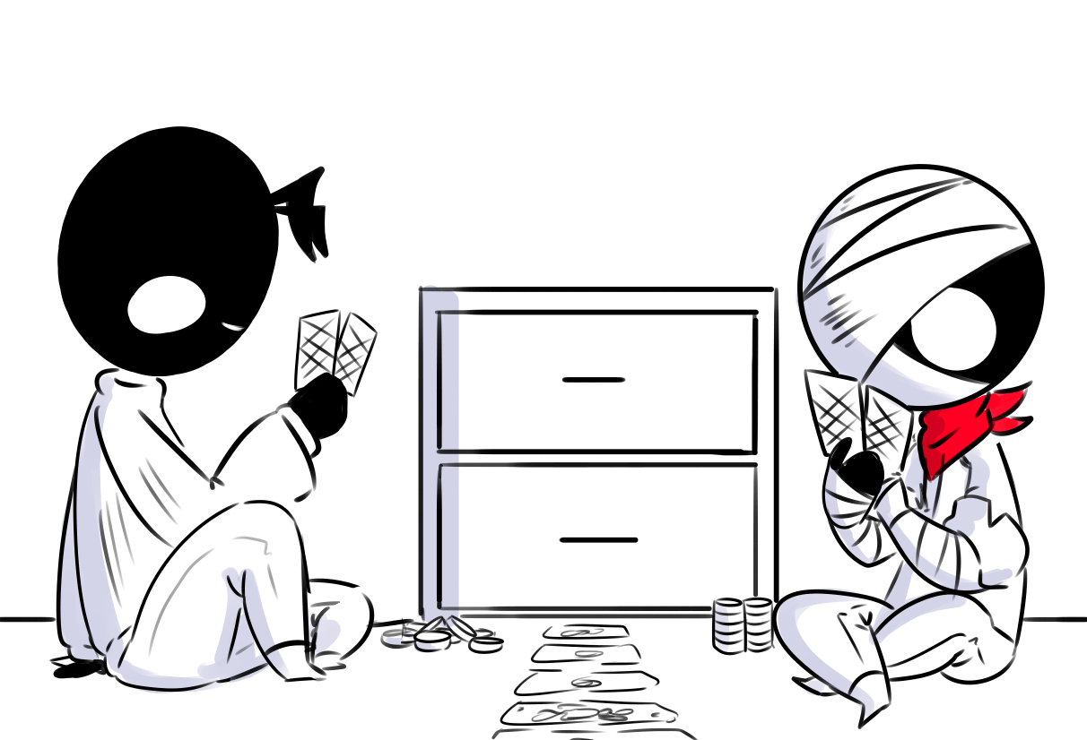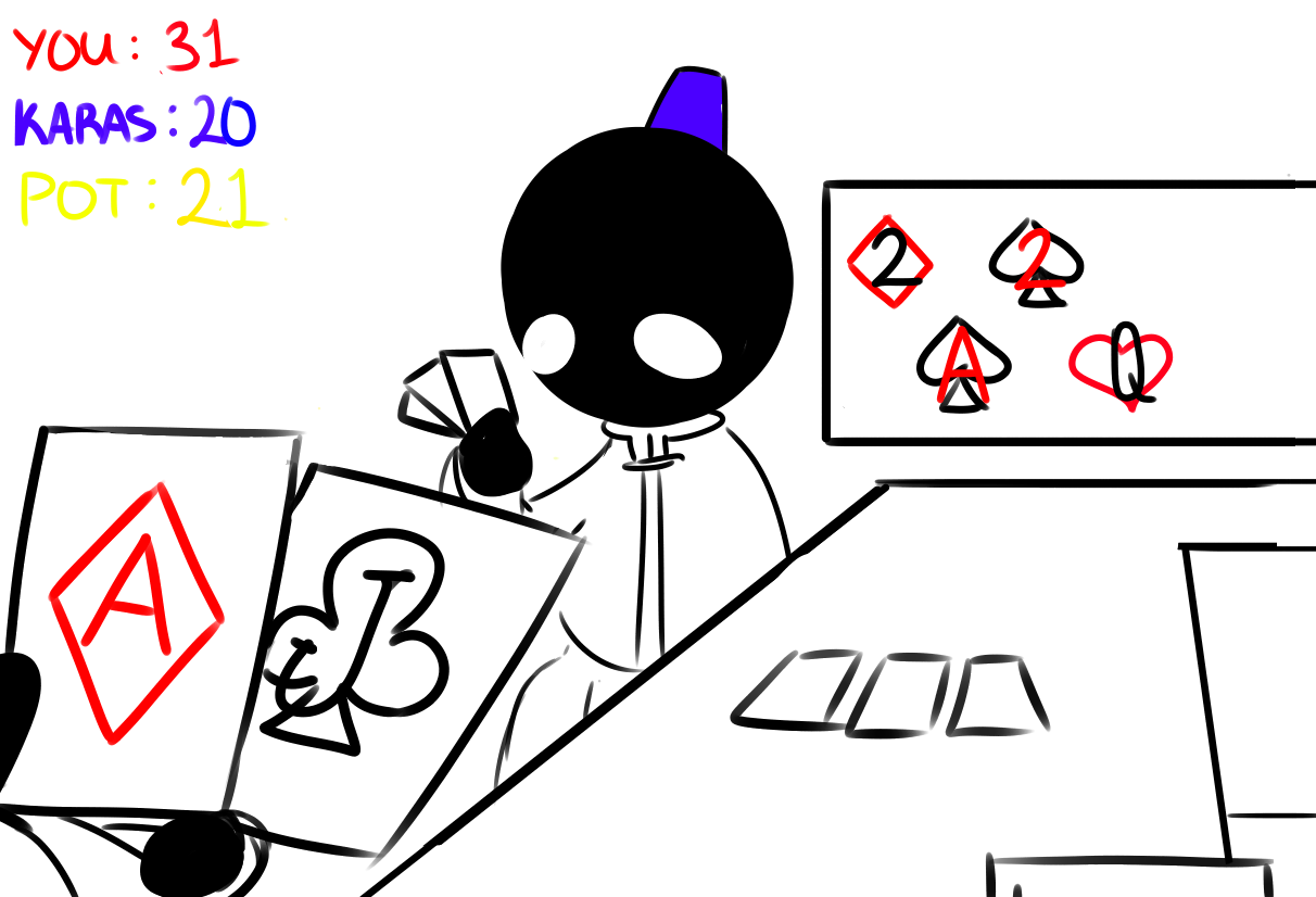 [Troy has the best Luck, if that stat is relevant, he can use his smuggling tricks to try to cheat at cards, and letting him try before Gallows might give us a second life, kind of, depending on how this game is actually played.]