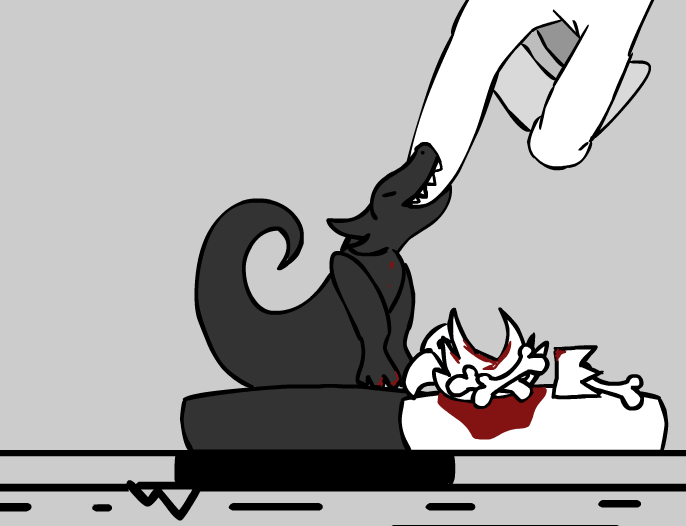 Genuinely chuckle while you reach over to help get that piece off Krotos' finger. Say that it figures that such a piece would have a taste for succulent Vark flesh.