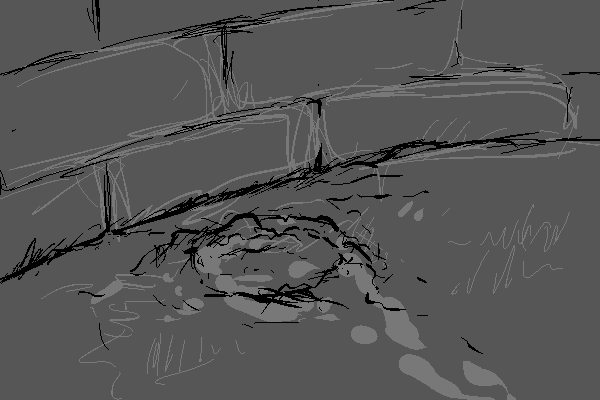 "It left behind a huge trail, whatever this is." I point out the path the creature took, "Trail leads from the over the fence towards the graves and towards the shack. It's then a straight path back towards the fence. Probably rank C with something this size. Get in touch with central intelligence, check if there has been other sightings of large creatures around. Someone has bound to have notice something this big."