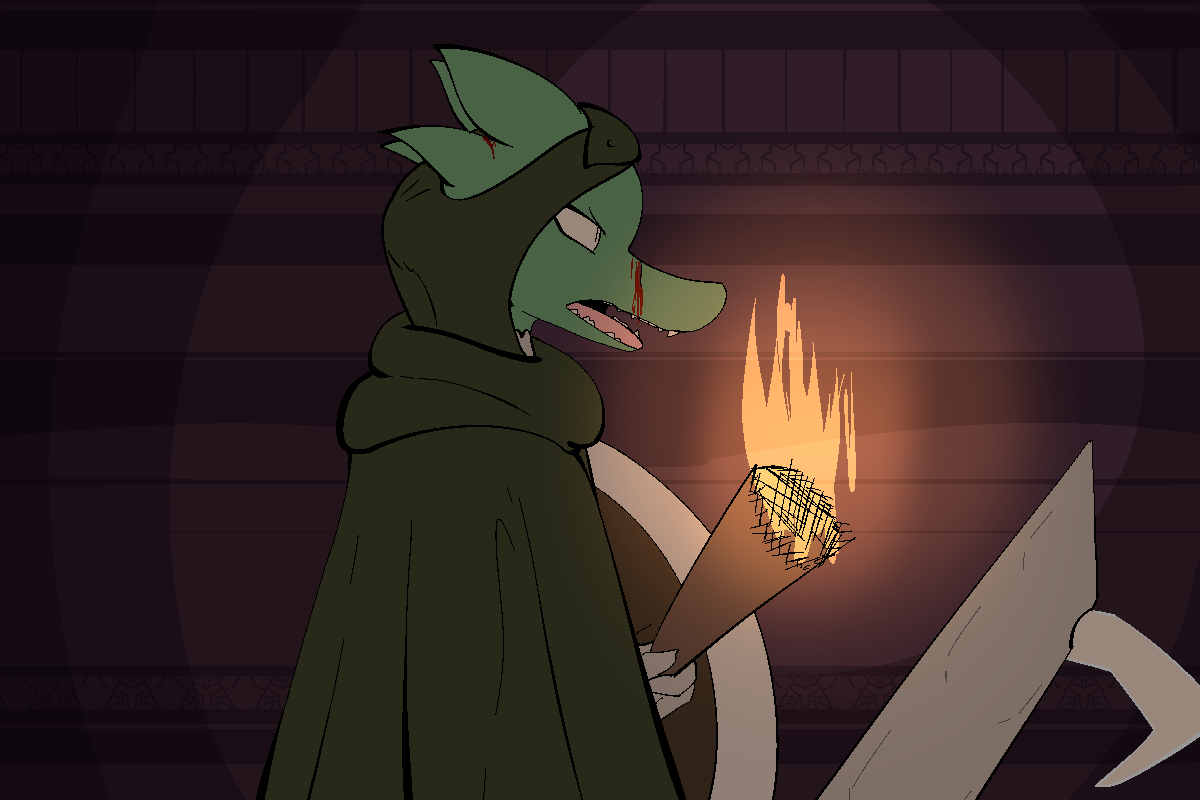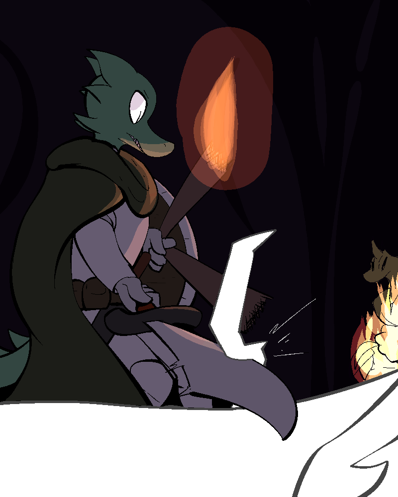 >"It's not that." Aira continues. "There's a weird area that blocked light. I tossed a torch in, and when I did, my arm got chilled. It's better, now, but something about it still makes me shiver. Where's Orjin?"