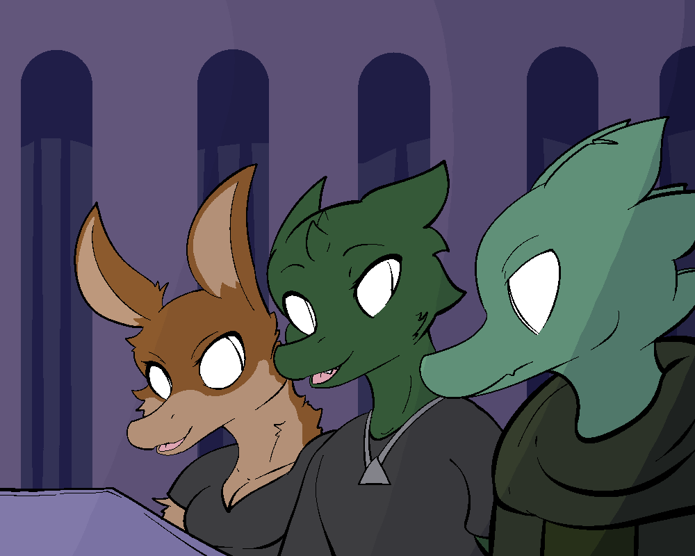 >"Talking in the tent." says Holly. "Bolk's team got back a little while ago. Apparently Mowbow found an emblem in a zombie's stomach. It turned out to be a wiped party that went missing after running into one of those weird areas you just mentioned. Orjin's busy right now trying to get the details out of them. Any drinks for the rest of you?"