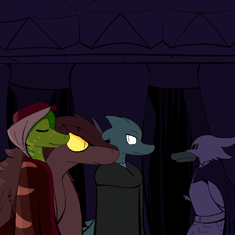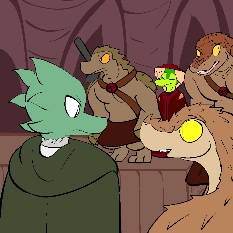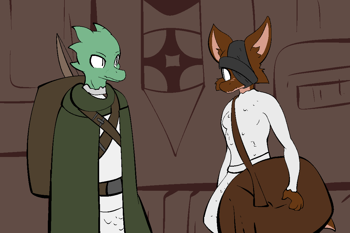 >"Yup." Holly explains. Valsano has given her a verbally hard time about her leg, but he's been oddly defensive of her when an outsider points it out. "Some people don't like it, but Orjin's nearly bit their head off if they so much as point it out. Want anything, Fen?"