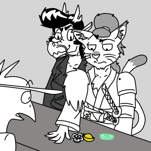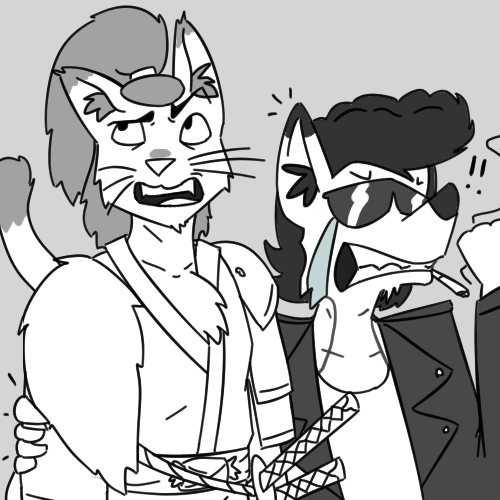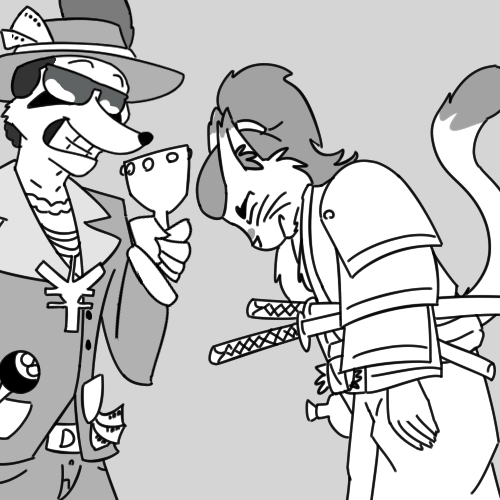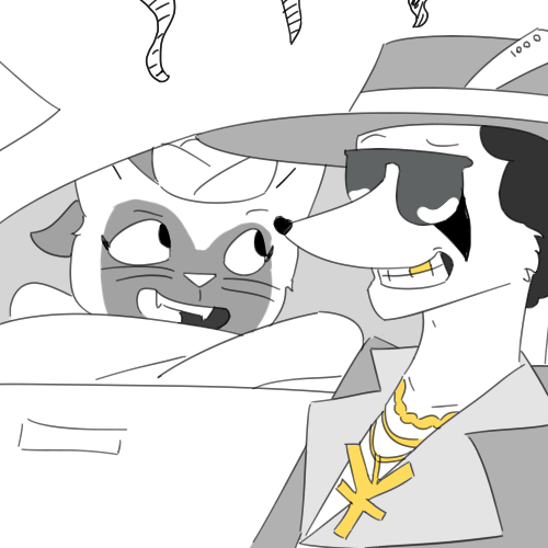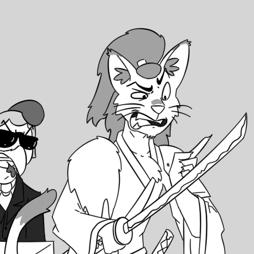 King: "Aint no bouddadoubt that!" He smiles, showing off his golden teeth. "Whats your code of boo-shi-dough say 'bout that? You in, cat? Keep in mind, you owe me one for this..."