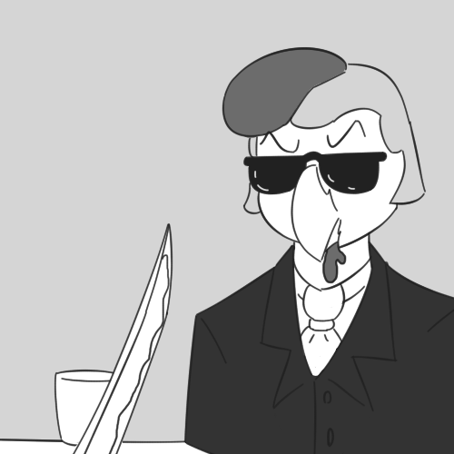 He looks at you through the small mirror above him. A sudden seriousness seems to wash over his being, even through his tinted glasses.
