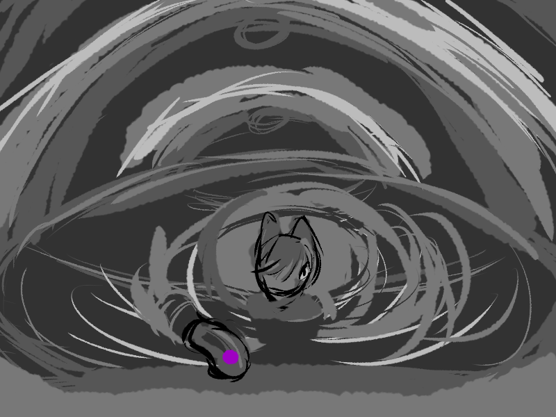 "Sis... it's that weird girl again. I think she's talking to the slime now..."
