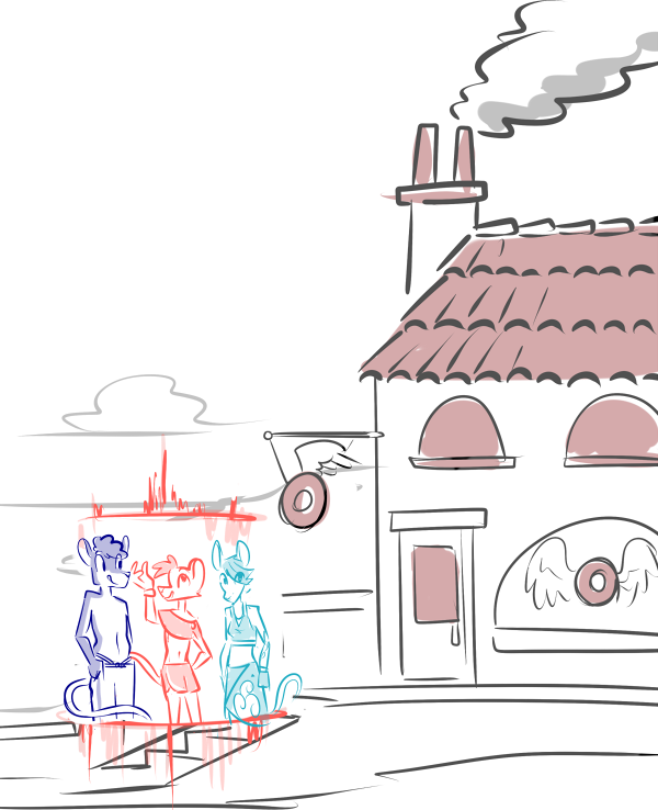 There's a tiny thunderclap as Gabe's SPIRIT GATE splits the air. The mystic energy dissipates and the three of you drop onto the street outside Miki's Heavenly Bakery. The air here in Moot Point is filled with the smell of sea salt and, thanks to the gate, the slight pang of ozone. What is noticeably absent, however, is the smell of baked goods.