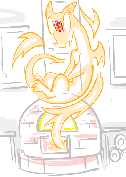 Miki sighs, "It's some kind of salamander: must have been dozing in the firewood for the stove. As soon as it woke up it exploded, and every time I try to go into the kitchen it gets worked up again for some reason! Can you guys help?"