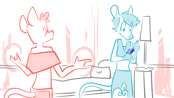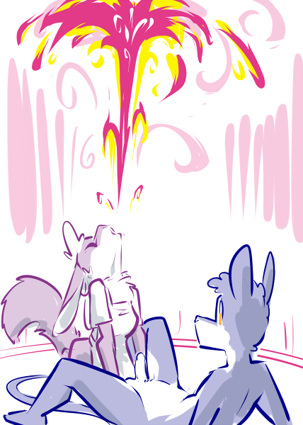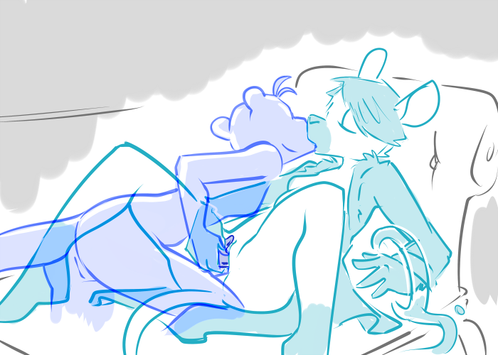 The quiet rhythmic sounds from behind the screen stop and are replaced by a series of short gasping grunts, punctuated by a drawn out “Nhhhhhh!” A moment later a warm, giddy chuckle is shared between Kol and Gabe, both of them sounding out of breath.