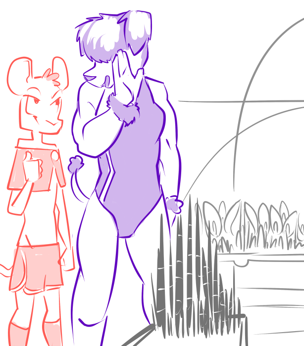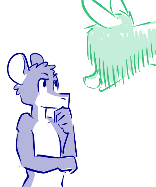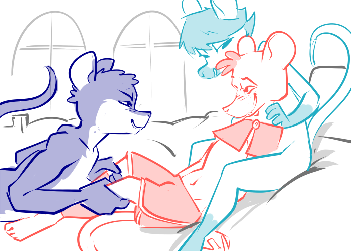 The lanky mouse strolls in and drapes himself over the glass display case. “Pretty good, Miki! The guys sent me for croissants.” He says, resting his chin in his hands, “Its a tragedy, being a Sender, Miki. All my effort learning to pierce the veil between life and death and what does everyone expect? ‘Gabe can you go get donuts?” He wails in mock distress. “Still, I get to see your smile don’t I?”