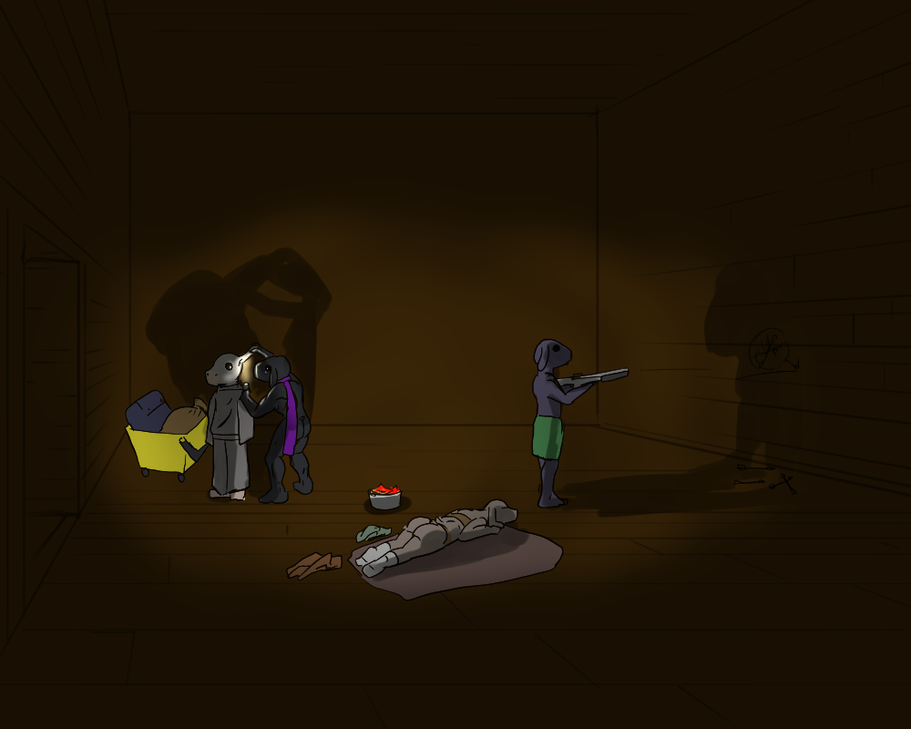 “ Well there’s a couple places you could use to get out, and go to some kind of civilization or another. If you were willing an’ able to do it, that is. But once you’re tied here, things are gonna start going off the longer you’re away. Place is made to pull you back in, and keep you here. I can’t get to any of those places myself, though. The whole thing wouldn’t work if we could get out of it. You see, there’s a dangerous thing it’s meant to contain. I’d say its name, but you probably aren’t up to hearin’ it. It’ll hurt you to say it, that’s for sure.