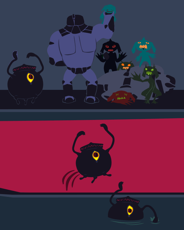 I have the brute pull itself out of the pool to put some pressure on the remaining imps. Doyle's still keeping his distance.