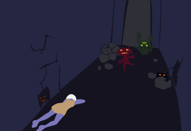 The bully seems to have lost its appetite for battle. Unfortunately Moriko's still being swarmed and I can't get over there fast enough. It and a gaggle of other imps flee into the Golem Totem and out into the night on the heels of the one that got tangled in Moriko's wrappings.