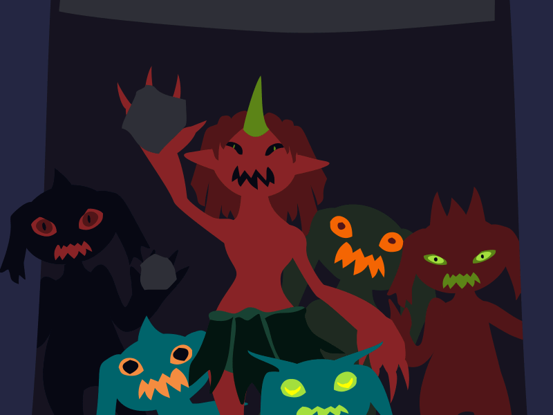 The rock throwers screech in victory. They don't seem to realise the other imps are using them as a distraction to make their getaway.