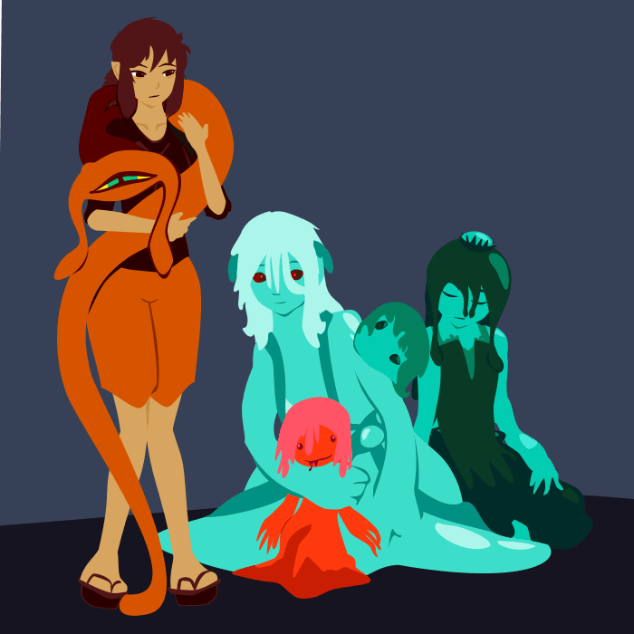 Finally Hin has the possibility of gaining Glutinous Ogre. It has a handful of nice features - making her skin more resistant to fire, cold, acid and cuts as well as the ability to secrete and spit sticky, slippery or acidic slime and she could be affected by things that would normally only benefit slimes - but most of its potential is that she might be able to develop further slimy abilities.