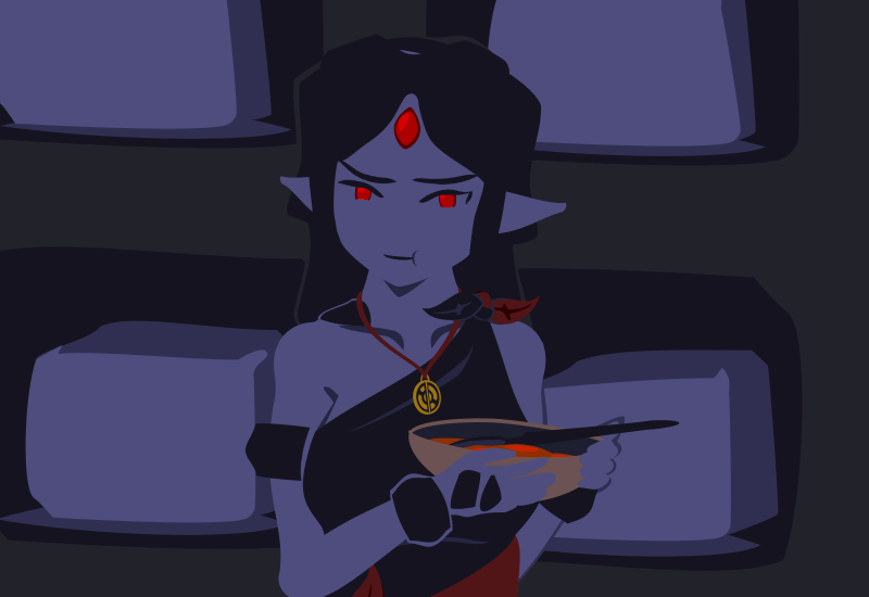 >The mention of Glutinous Ogre reminded me that Hin has Gluttonous Ogre. Given that she resists ingested poisons and curses and gains a boost of health simply from eating, shouldn't she be munching on imp jerky whenever she's exerting herself? That might help making a dent in the corpse supply.