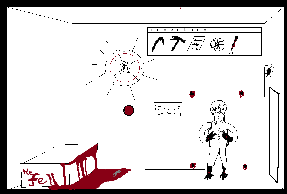 As my fist connects with the door, I knock it off it's hinges and blood begins to filter through the doorway.
